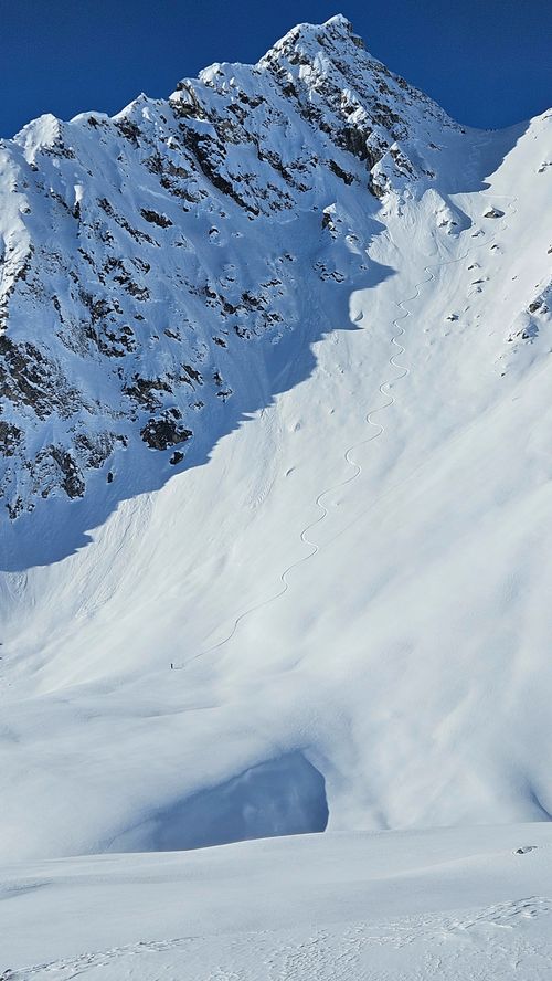 A dramatic high-alpine face with complex entries, fluted spines, and a 2,000-foot couloir. A long-time goal, finally checked off.